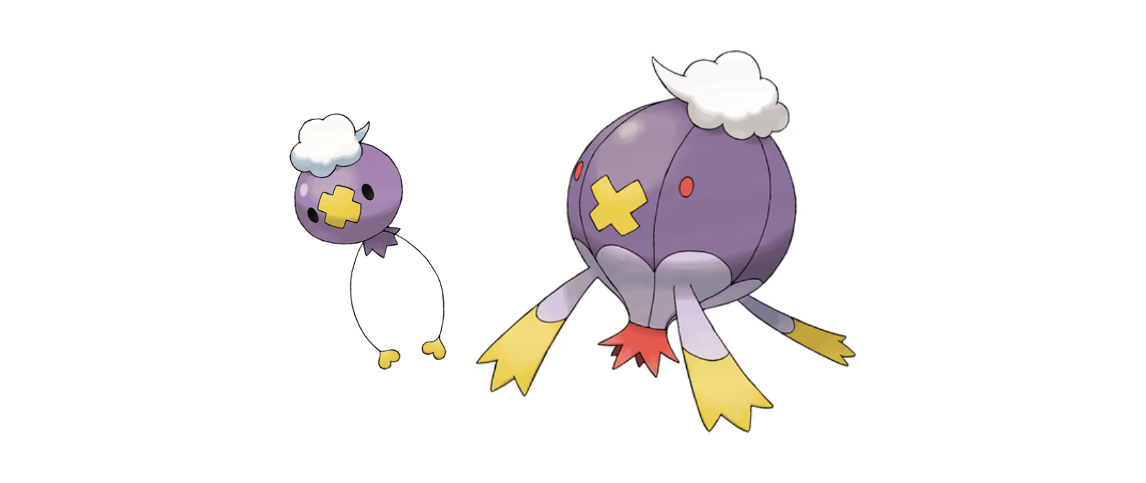 Drifloon e Drifblim compartilham uma das origens mais sombrias da Pokédex, unidos não apenas por sua linha evolutiva, mas também por sua natureza espectral. Formado pelos espíritos de pessoas e Pokémon, Drifloon é conhecido em contos antigos como o “Sinalizador para Espíritos Errantes”. Aparentemente inofensivo, ele vaga pelas estações úmidas em busca de companhia, aproximando-se de crianças para agarrá-las pelas mãos e, segundo as lendas, arrastá-las para a vida após a morte. Dizem que seu corpo se expande a cada alma levada e que, caso se rompa, libera um grito estridente ao derramar sua essência espiritual.