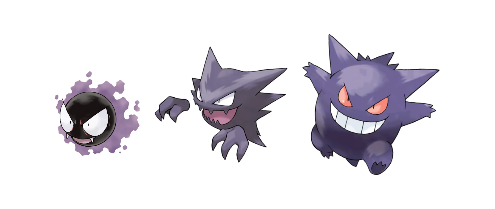 A clássica linha evolutiva de Gastly, Haunter e Gengar é uma das mais icônicas e, ao mesmo tempo, mais sinistras do universo Pokémon. Tudo começa com Gastly, uma entidade formada a partir de gases tóxicos que emergem de cemitérios e se misturam às mágoas dos mortos. Com um corpo composto quase inteiramente de veneno e apenas uma pequena parcela de almas humanas, ele vaga como uma névoa viva, venenosa e ressentida, à procura de novas vítimas que sucumbam ao seu toque letal.