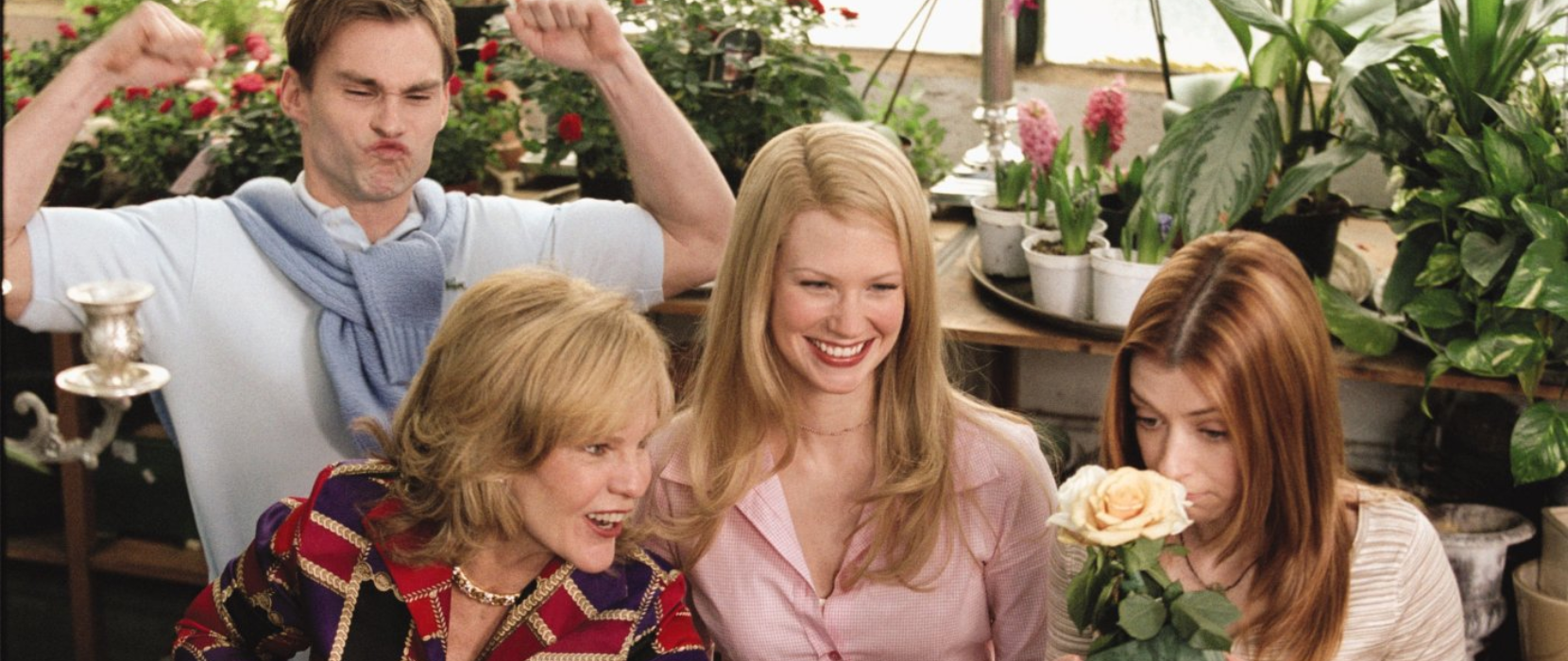O elenco, já profundamente afinado após anos interpretando esses personagens, é o grande motor emocional e cômico do filme. Jason Biggs mantém o carisma atrapalhado de Jim, enquanto Alyson Hannigan entrega uma Michelle ainda mais encantadora e decidida, consolidando o casal como o coração da franquia. Porém, é Seann William Scott quem domina completamente o terceiro longa: Stifler, antes visto apenas como o caos ambulante da história, ganha aqui uma combinação rara de humanidade, vulnerabilidade e, claro, completa idiotice proposital. Sua jornada improvável rumo a algum tipo de maturidade torna American Wedding a prova definitiva de que nenhum gênero, nem mesmo a comédia escatológica adolescente, está além da redenção quando encontra o equilíbrio ideal entre exagero, afeto e crescimento real dos seus personagens. Além disso, o filme aproveita bem Eddie Kaye Thomas, que mantém Finch como a figura mais sofisticada e deslocada do grupo, rendendo ótimos contrastes com Stifler. January Jones também entrega uma Cadence carismática, equilibrando inocência e presença cênica de um jeito que dinamiza a rivalidade entre Finch e Stifler. Entre os ausentes, Chris Klein (Oz) é o único membro do quinteto original que não retorna, deixando um vazio perceptível na dinâmica do grupo. Já Thomas Ian Nicholas, como Kevin, orbita pela trama com pouco impacto, funcionando mais como parte da memória afetiva da franquia do que como peça essencial desse capítulo.