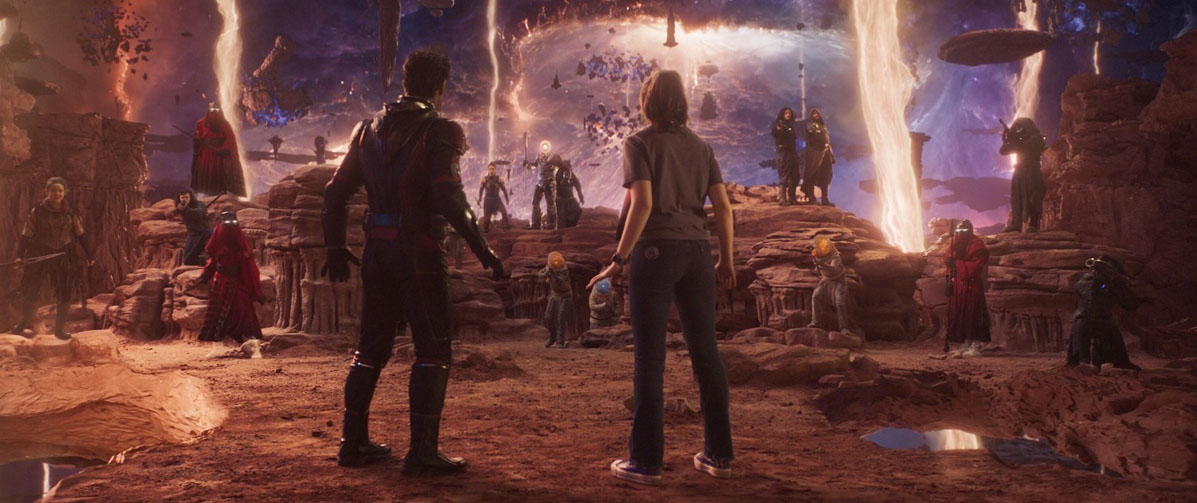Houve bastante criatividade do pessoal responsável pelo design de produção em fazer as criaturas mais esquisitas possíveis, e de certa forma também tornando o filme estranho e engraçado ao mesmo tempo, mesmo que o tom de comédia do terceiro filme seja menor com relação aos outros. Existe um certo suspense e gravidade da situação quando temos os antagonistas sendo apresentados, entre eles Kang, o Conquistador, o próximo grande vilão da Marvel na Saga do Multiverso, interpretado pelo brilhante Jonathan Majors. O cara é simplesmente “FANTASTICO”, a postura, a fala, a cada cena ele te pega de jeito e você sente a ameaça do vilão, esse sim carrega o filme, já que a todo o momento o filme tente achar seu protagonista.