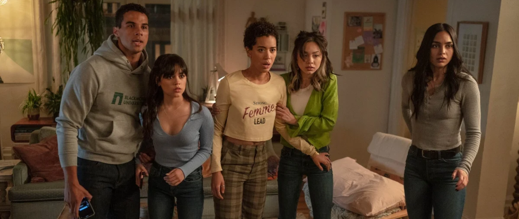 O elenco de Pânico 6 demonstra uma evolução perceptível em relação ao filme anterior, especialmente o quarteto de sobreviventes, que ganha mais personalidade e espaço dentro da narrativa. Melissa Barrera encontra aqui um equilíbrio melhor entre fragilidade e força, enquanto Jenna Ortega ganha mais tempo de tela e aproveita cada segundo, entregando uma presença mais firme e emocionalmente madura, consolidando Tara como uma das figuras centrais da nova geração. Jasmin Savoy Brown, por sua vez, assume completamente o papel que Randy ocupava na franquia, e talvez até o supere: Mindy se torna a verdadeira porta-voz dos roteiristas, verbalizando as novas regras de como construir uma sequência dentro de uma requel, com falas como “orçamento maior, elenco maior, contagem de corpos maior” e “ninguém está seguro”. Essa metalinguagem é tão divertida quanto funcional, oferecendo ao público pistas para desvendar o mistério e reforçando a essência autorreferencial que define Pânico. Depois da morte de Dewey, a franquia também deixa claro que não tem medo de eliminar figuras icônicas, e Pânico 6 sustenta essa ousadia ao reafirmar que, realmente, ninguém está seguro. Além disso, o retorno de Hayden Panettiere como Kirby Reed é uma das gratas surpresas do filme. A personagem, que sobreviveu ao segundo massacre de Woodsboro, retorna agora como uma agente do FBI, trazendo consigo um amadurecimento que reflete tanto sua trajetória pessoal quanto o crescimento da própria franquia.