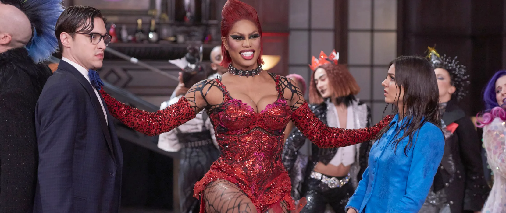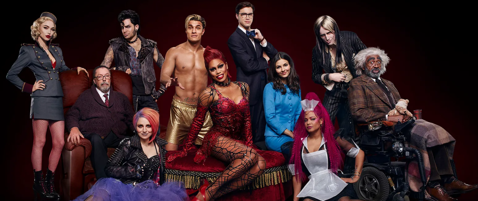 Tim Curry viveu brilhantemente o papel de Dr. Frank N. Further em 75, e claro que a grande expectativa seria quem iria viver esse papel novamente na nova adaptação de TV. A princípio, foi escalado Adam Lambert, conhecido por sua colaboração com a banda Queen, além de ter uma sólida carreira solo no pop, mas essa escalação foi muito mal recebida por uma parcela do público, já que por muitos anos se discutiu a real identidade de gênero de Dr. Frank, visto que ele mesmo se descreve como uma “Sweet Transvestite”. Ao contrário daqui do Brasil, que existe o termo “Travesti” para se referir a uma identidade trans-feminina, nos Estados Unidos, termos como “Transvestite” e “Travesti” são usados num contexto de crossdressing, o ato de vestir roupas femininas para fins sexuais ou por performance mesmo como é para Drag Queens, portanto a identidade verdadeira do personagem é muito ambígua e aberta a interpretações dos espectadores, que na verdade é a proposta do filme em si, já que colocar um homem como Tim Curry, nos anos 70, com maquiagem forte e roupas “femininas” já era um ato de subversão de gênero incrível para a época. Mas na adaptação de 2016, com tamanha discussão sobre o assunto e o próprio astro Adam Lambert recusando o papel após ter aceitado, que inclusive ainda entrou para o elenco fazendo uma participação especial, foi escalada a atriz Laverne Cox que estava em uma enorme ascensão na época por conta da série Orange is the new Black (2013), uma boa escolha, fazendo muito sentido para a época, além de dar mais visibilidade para uma atriz trans tão importante.